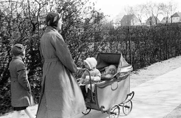 Familier med børn og barnevogne i Sundby på Amager