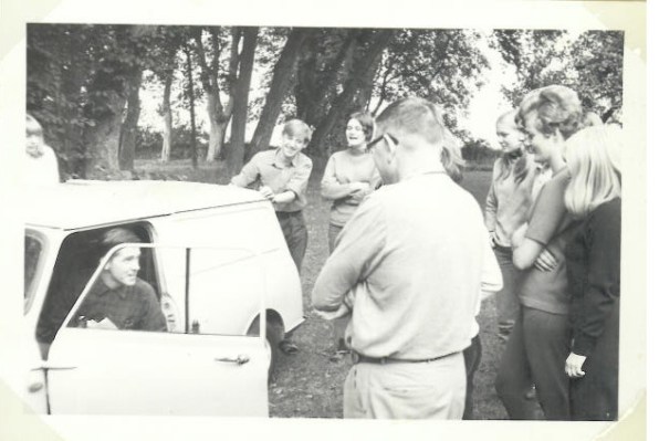 Vores Latinlærer ankommer i privatbil til Hald Egede