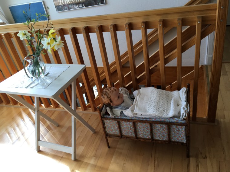 Torben forestillede sig, at han kørte bil i stolen, der var lagt ned og jeg så for mig at havestolen (model Humblebæk) var den vugge, jeg så brændende ønskede mig til en glas babydukke, som jeg også ønskede mig, men ikke fik. Måske fordi, jeg aldrig sagde det højt.