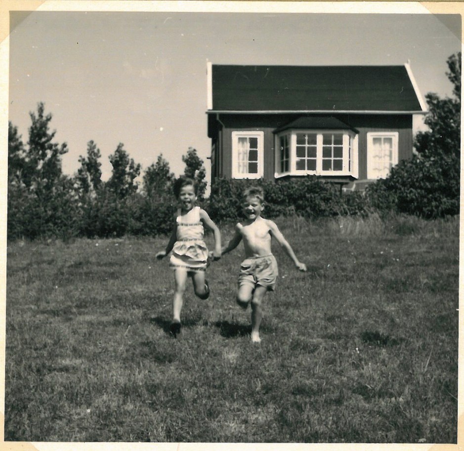 Det lille sommerhus havde ikke indlagt vand, men vi kunne lide at styrte ned af græsplænen og hente vand i små kedler. Den første dag vi kom dertil styrtede regnen ned og der var en særlig lyd af trommen på taget, mens vi lå på køjesengene og læste Anders And blade. Der på have ligget en stak, fordi vi havde ikke selv Anders And blade. Foran køkkendøren var der gravet et dybt hul ned til opbavaring af mad. Der var køligt som i et køleskab.